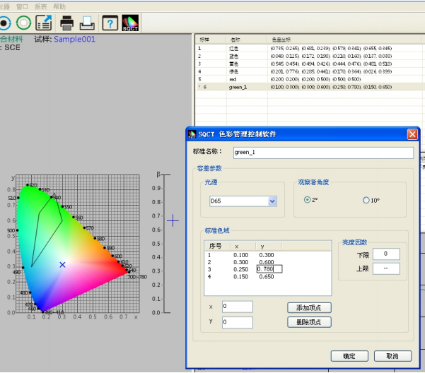 专用于交通路标、标线、反光膜的亮度因数、色品坐标测量,内含GB 2893、GB/T 18833标准色,可手动自定义多边形矩形容差。 可用于塑胶电子、油漆油墨、纺织服装印染、印刷等行业颜色传递和质量控制方面。 |
