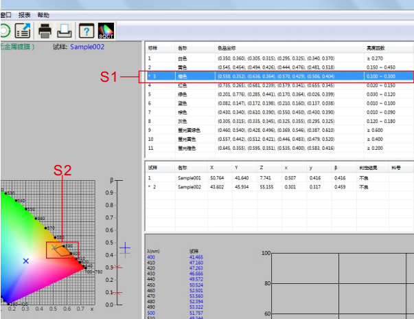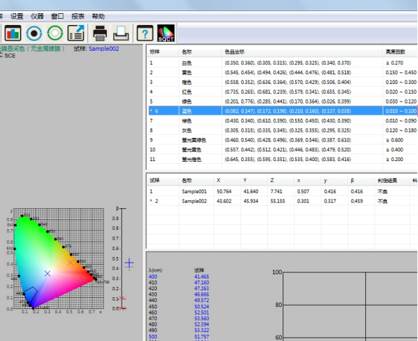 | 色差公式 | ΔE*ab,ΔE*uv,ΔE*94,ΔE*cmc(2:1),ΔE*cmc(1:1),ΔE*00 |